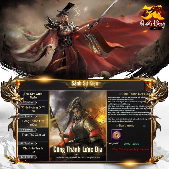 3Q Quần Hùng mùa 2 sẽ có những thay đổi lớn, hàng loạt các vị tướng như: Lữ Bố, Quan Vũ, Vu Cát, Nam Hoa Lão Tiên, Tả Từ, Tô Vân….và tất nhiên không thể bỏ qua vị quân sư cực kỳ nổi tiếng Gia Cát Lượng sẽ khoác lên mình trang bị mới cộng với những kĩ năng cực bá khiến anh em game thủ khó có thể rời mắt khỏi màn hình.