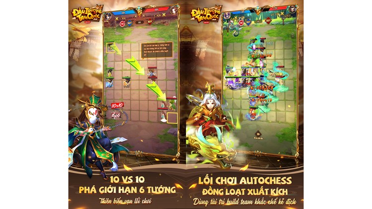Đấu Trường Tam Quốc là sự kết hợp lối chơi giữa autochess và afk, nhằm định hướng một xu thế chơi game mới. Thay vì giới hạn 6 tướng ra trận, cố định vị trí, đánh theo từng lượt, Đấu Trường Tam Quốc cho phép 10 tướng cùng ra trận, đồng loạt xuất kích, di chuyển tự do. Bên cạnh đó, hệ thống 150 tướng với 6 nước Ngụy, Thục, Ngô, Quần, Đế, Ma và 5 nghề Đấu Sĩ, Pháp Sư, Thích Khách, Xạ Thủ, Hỗ Trợ khắc chế lẫn nhau tạo ra hàng vạn trận hình khác nhau, khiến đối phương không thể bắt bài bạn.
