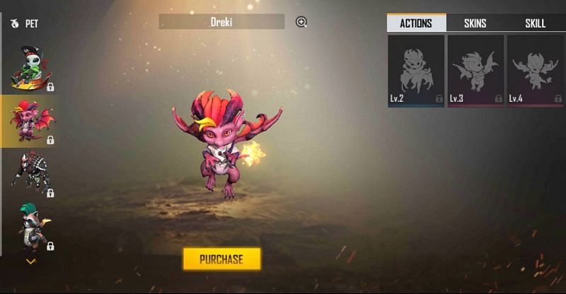 Dreki đã được thêm vào như một phần của sự kiện nạp tiền trong Free Fire vào tháng Tư. Năng lực của chú pet này là Dragon Glare, có thể cung cấp thông tin về kẻ thù. Khi người chơi trang bị cho thú cưng, họ sẽ phát hiện ra một đối thủ sử dụng vũ khí trong phạm vi 10m, kéo dài trong ba giây ban đầu. Sau đó tăng lên 4 đối thủ sử dụng trung phong trong phạm vi 30m. Việc có thông tin về đối thủ đóng một vai trò quan trọng trong việc xây dựng lối chơi của họ dựa trên thông tin này.