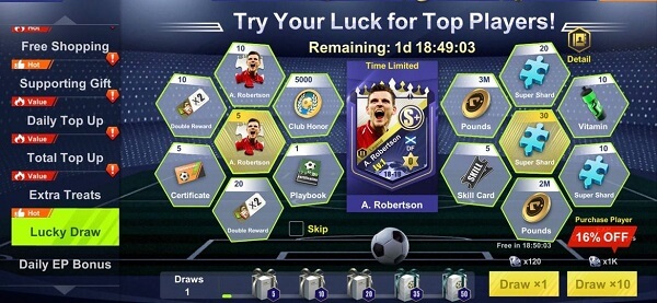 Phần thưởng trong game tại từng chế độ chơi vô cùng phong phú, bạn hoàn toàn có cơ hội sở hữu những siêu sao sân cỏ như Pirlo – phiên bản Ultimate AC.Milan hoặc Ronaldo – phiên bản Ultimate Real Madrid.