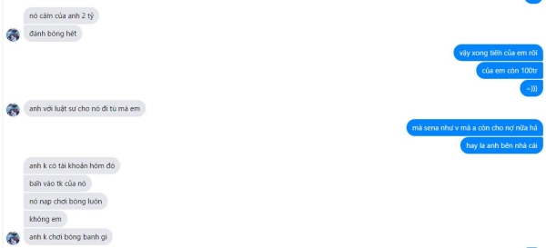 Như Game8 đã đưa tin cách đây ít giờ, mới đây Sena đã bị quản lý của mình tố có hành vi lừa đảo và chiếm đoạt số tiền lên đến 2 tỷ đồng. Theo đó, trong một lần cần giao dịch số tiền với tổng trị giá 2 tỷ đồng, do tài khoản ngân hàng đang trục trặc, quản lý đã gửi nhờ vào tài khoản Sena. Tuy nhiên thay vì hoàn trả số tiền 2 tỷ kể trên, Sena lại tiếp tục all in mùa Euro. Số tiền này được Sena sử dụng để tham gia hành vi cá cược bóng đá, cũng theo như chia sẻ của người quản lý này thì nếu Sena không trả được số tiền 2 tỷ đồng thì sẽ nhờ đến pháp luật xử lý.