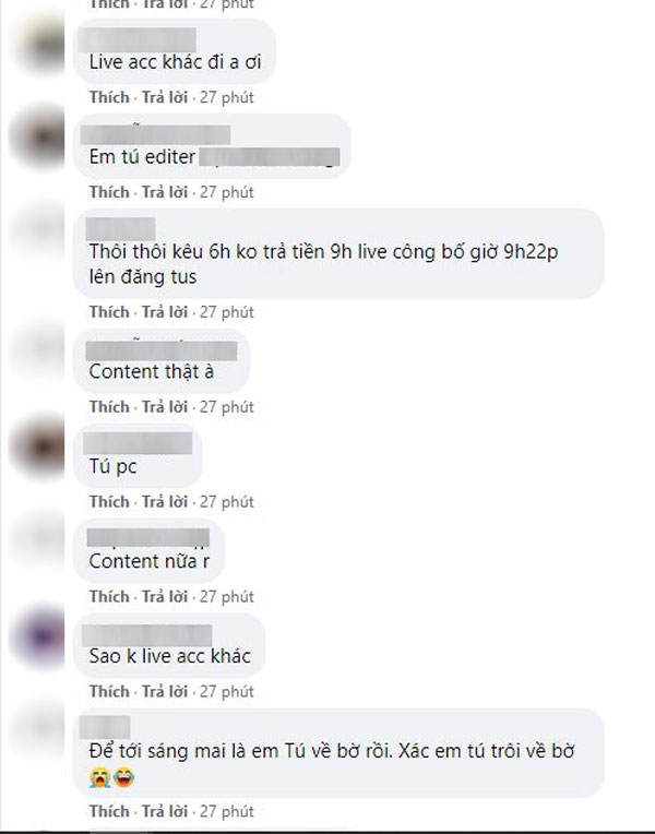 Theo như hứa hẹn thì quản lý của Sena sẽ đăng đàn live stream bóc phốt vào đúng 21h ngày 11/7 tuy nhiên tới 21h22 cùng ngày anh chàng lại sủi kèo với lý do Sena động tay động chân lên Facebook dẫn tới tài khoản của vị quản lý này bị cấn phát trực tiếp.