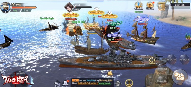 Đúng với bản chất PK không giới hạn, tại Tàng Kiếm Mobile, người chơi sẽ được cùng bạn bè đóng chiến hạm, tạo liên minh để tham gia vào những trận đại Thủy chiến liên server đầy khói lửa và tranh cướp những kho báu vô cùng giá trị. Những pha săn Boss, chiếm đảo cướp tài nguyên hay những màn rượt đuổi, bắn tên lửa đánh chìm tàu địch “căng như dây đàn” đang chờ đợi bạn tại Tàng Kiếm Mobile.