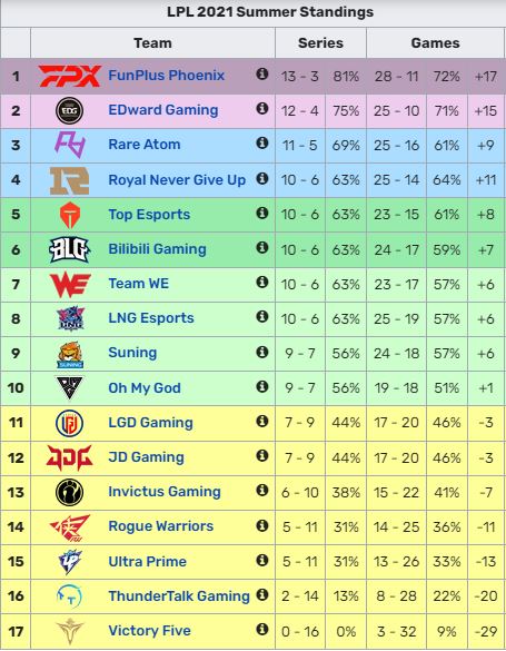 Một điều đặc biệt vừa xảy ra sau trận thua của Top Esports trước LNG Esports vào chiều qua, đó là cả 4 đại diện của LPL tham dự CKTG 2020 đều sẽ không có mặt tại CKTG 2021. Trên thực tế, cả 4 đội tuyển ưu tú nhất của LPL trong năm 2020 bao gồm: Top Esports, JD Gaming, Suning và LGD Gaming đều trải qua năm 2021 đầy khó khăn, đặc biệt là tại mùa giải Mùa Hè này.