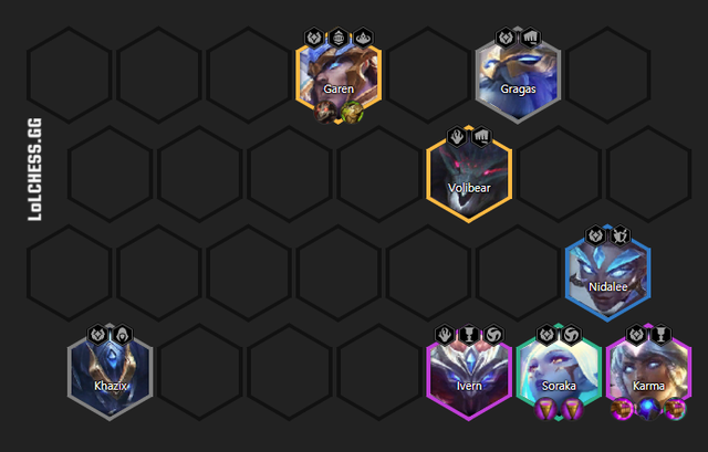 Bên cạnh việc được buff trực tiếp, sự thay đổi của meta cũng vô tình giúp cho những đội hình chơi xoay quanh Karma trở nên cực kỳ mạnh. Điểm yếu của lối chơi này đó là bạn sẽ hiếm khi nâng cấp được các đội hình ở giữa trận và mất rất nhiều máu nếu đối thủ chọn phương án reroll. Tuy nhiên những đội hình reroll mạnh nhất như Kỵ Sĩ, Thây Ma… đều đã bị nerf nặng ở update vừa rồi. Vì vậy game thủ buộc phải tìm tới các unit 3 vàng 3 sao hoặc chọn lối chơi đẩy lên cấp 8.