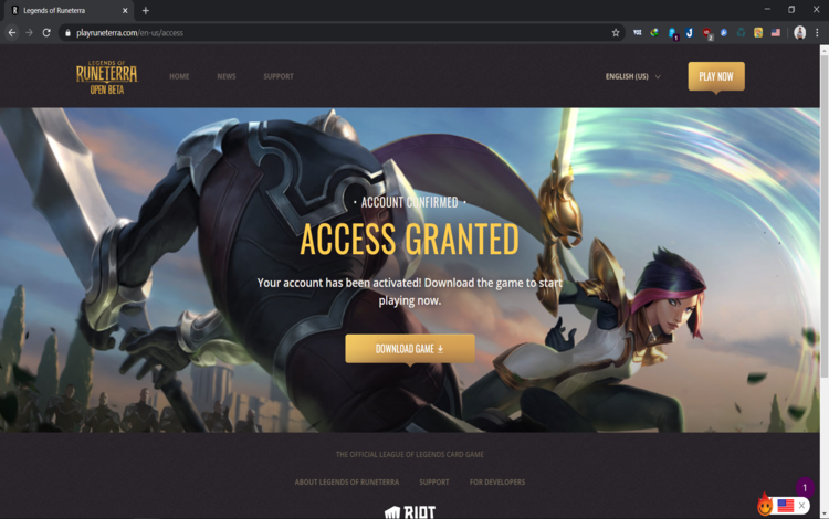 Bước 6: Sau khi tạo tài khoản Riot Games thành công, màn hình bên dưới sẽ xuất hiện. Bấm “Download Game” để bắt đầu tải League of Runeterra về máy.