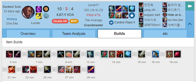 Đương nhiên là với một dạng tướng Xạ thủ đi Đường giữa như Lucian thì Cung Phong Linh vẫn là item mà bạn cần mua đầu tiên. Bạn không nên mua Thương Phục Hận Serylda từ quá sớm bởi chỉ số xuyên giáp theo phần trăm của item này có giá trị khá thấp ở thời điểm trước phút thứ 10. Thay vào đó thì game thủ nên lên Thương Phục Hận Serylda ở vị trí trang bị thứ hai hoặc thứ ba, tùy vào tình hình trận đấu.