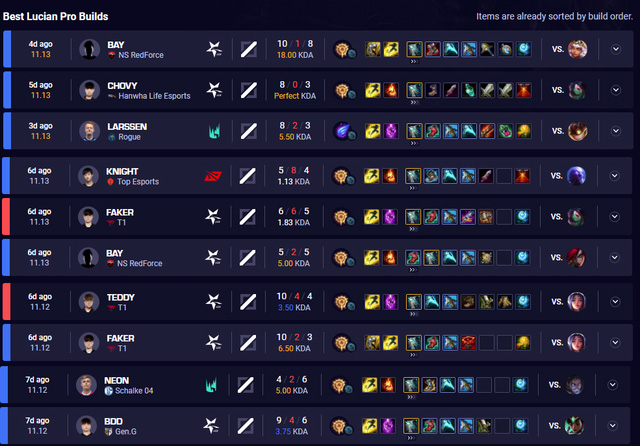 Trong những mùa vừa qua, Lucian là vị tướng cực kỳ mạnh ở vị trí Đường giữa với độ cơ động cao và khả năng đè đường tốt. Ở giai đoạn mùa 11 thì Lucian dường như đang gắn chặt với các trang bị chí mạng như Cung Phong Linh, Lưỡi Hái Linh Hồn, Vô Cực Kiếm… Tuy nhiên trong vài tuần trở lại đây thì các game thủ chuyên nghiệp, bao gồm cả Faker, đã tìm ra một item “trấn phái” mới cho Lucian đó là Thương Phục Hận Serylda.