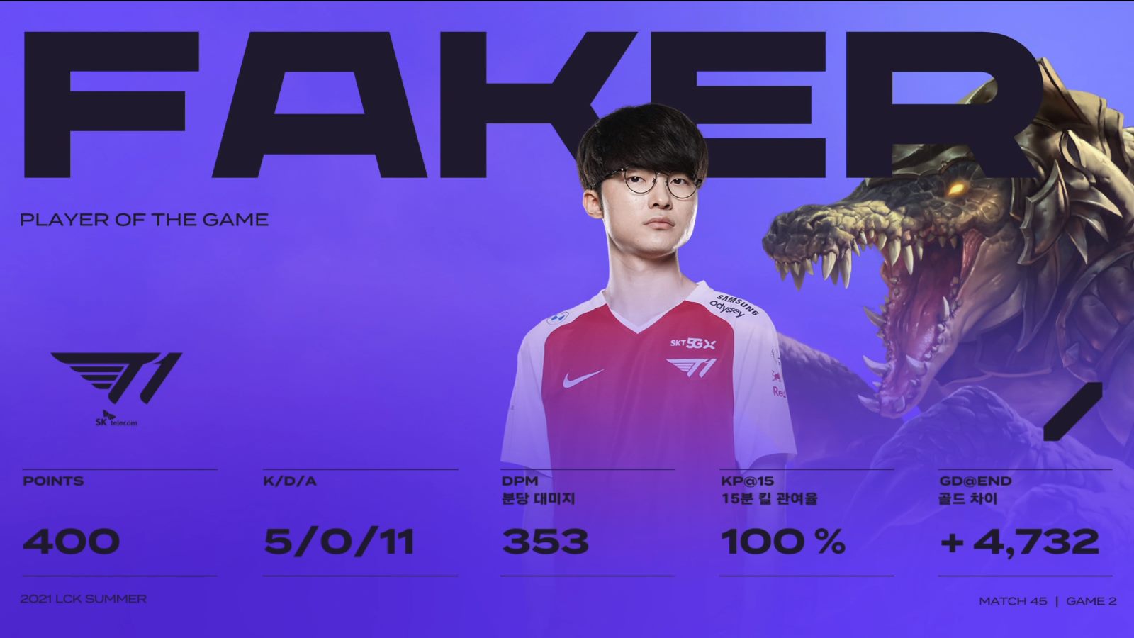 Không còn hình ảnh “T1 Red Wings”, trong cuộc đối đấu với đội đầu bảng Gen.G, T1 đã trình diễn một bộ mặt hết sức thuyết phục với lối chơi ép giao tranh mạnh mẽ và khả năng lăn cầu tuyết hoàn hảo. Qua đó, Faker và các đồng đội bỏ túi thắng lợi 2 – 0 đầy xứng đáng.