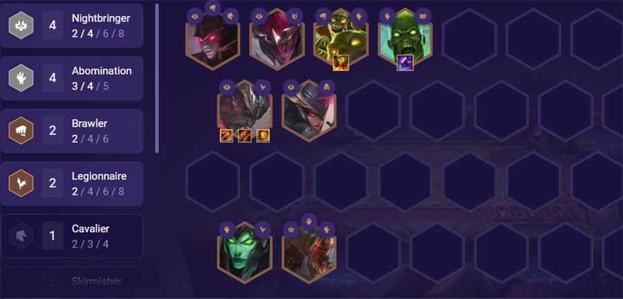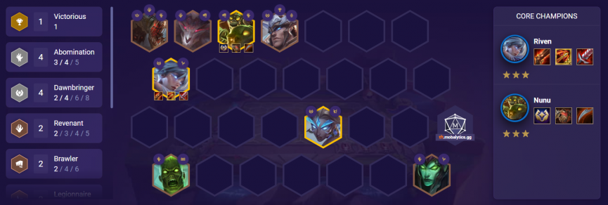 Đội hình này sẽ xoay quanh 4 Thây Ma và 4 Thần Sứ với Riven là chủ lực. Các trang bị của Riven sẽ tương tự với đội hình 6 Thần Sứ cũ. Riven sẽ bắt buộc phải lên được 3 sao nếu bạn muốn đạt được top cao.