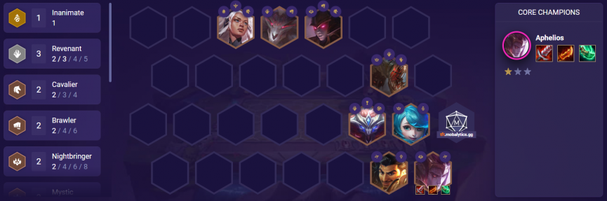 Đội hình này thực sự sinh ra để bảo vệ Aphelios khi những gì bạn phải làm là kẹp đúng hệ bao gồm: Tà Thần, Kỵ Sĩ, Đấu Sĩ và Ma sứ để giúp “vị tướng cân bằng nhất trong lịch sử 200 năm làm game của Riot” được xả sát thương nhờ dàn chắn này.