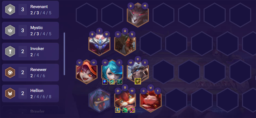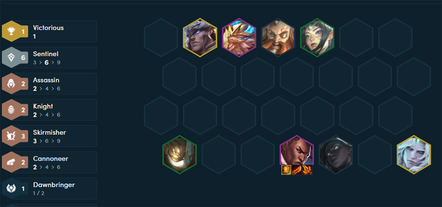 Bạn có thể khởi đầu với những tướng Vệ Binh, sau đó bỏ dần cách tướng Bí Ẩn hoặc sử dụng 6 Vệ Binh để def máu ở giữa trận. Nếu không thể kiếm được các tướng như Gwen, Volibear và Ivern, hãy xoay sang sử dụng đội hình Vệ Binh Pháo Thủ dưới đây.