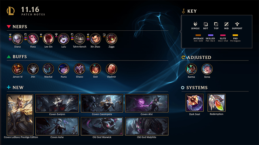 Trong các giải đấu LMHT chuyên nghiệp trên khắp thế giới, những vị tướng pháp sư hay những đấu sĩ mới là ưu tiên hàng đâu. Ở phiên bản 11.16 này, vai trò đường giữa không bị tác động quá nhiều, những pháp sư vẫn có chỗ đứng hay những sát thủ có khả năng cấu rỉa, gây tác động sớm như Leblanc vẫn sẽ có chỗ đứng.