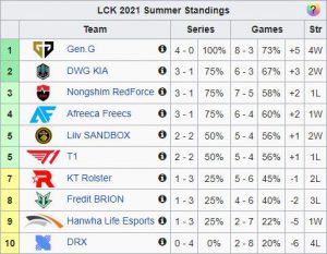 Bảng xếp hạng LCK mùa Hè 2021 mới nhất Update 04/2026