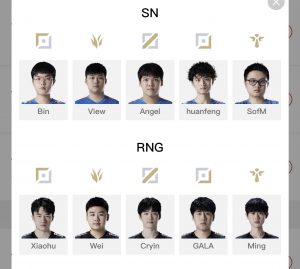 Theo thông báo chính thức từ trang chủ LPL, đội hình thi đấu chính thức của Suning ở trận đấu với RNG gồm: Chen “Bin” Ze-Bin (đường trên), Chen “View” Yu-Ming (đi rừng), Xiang “Angel” Tao (đường giữa), Tang “Huanfeng” Huan-Feng (xạ thủ) và Lê “SofM” Quang Duy (hỗ trợ). Ở chiều ngược lại, đội......