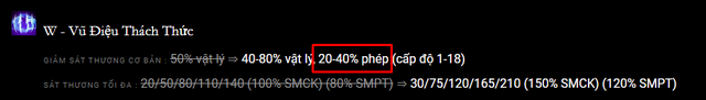 Giảm sát thương vật lý thay đổi từ 50% (7% mỗi 100 SMPT) sát thương vật lý thành 40-80% sát thương vật lý và 20-40% sát thương phép thuật theo cấp 1-18 (+7% mỗi 100 SMPT)