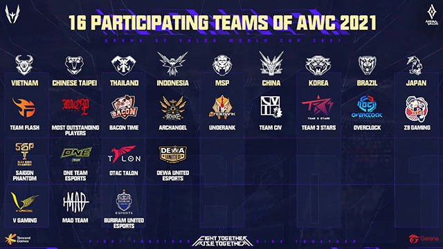 Tại giải đấu AWC 2021 lần này có tổng cộng 16 đội tham gia thi đấu từ 9 khu vực khác nhau. Bao gồm Việt Nam (Team Flash, Saigon Phantom và V Gaming), Đài Bắc Trung Hoa (Most Outstanding Players, One Team Esports và MAD Team), Thái Lan (Bacon Time, DTAC Talon và Buriram United Esports), Indonesia (Archangel và Dewa United Esports), Malaysia (Underank), Trung Quốc (Team CIV), Hàn Quốc (Team 3 Stars), Brazil (Overclock) và cuối cùng là Nhật Bản (Z9 Gaming).